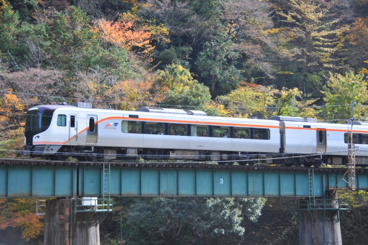 8081D 特急“ひだ81号” クモハ85-8+モハ84-8+モハ84-108+クモロ85-8 高山本線 焼石〜少ヶ野(信) '25/11/16(11:55) |